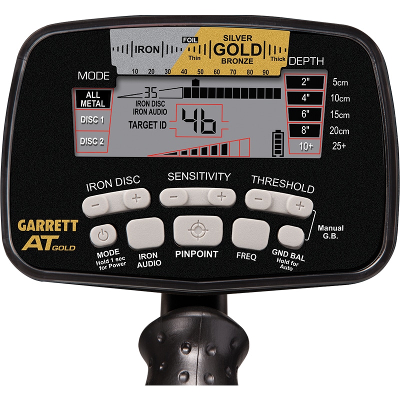 The Garrett At Gold metal detector is a perfect land and water gold prospecting metal detector. Experience extreme depth and performance in all terrains. The AT Gold is one detector that is designed to meet all of your prospecting and gold hunting metal detecting requirements. Be sure to read our Guide Comparing the Garrett AT Pro, AT Gold and AT Max metal detectors.