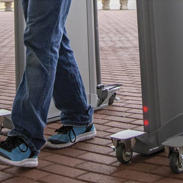 Two fixed casters with locking devices provides stable detector operation, while two swivel casters with locking devices provide maneuverability. The assembly can be permanently attached to walkthrough’s base. - All terrain environment design.